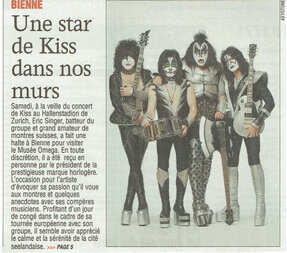 Samedi, à la veille du concert de Kiss au Hallenstadion de Zurich, Eric Singer, batteur du groupe et grand amateur de montres suisses, a fait une halte à Bienne pour visiter le Musée Omega. En toute discrétion, il a été reçu par le président d’Omega en personne.