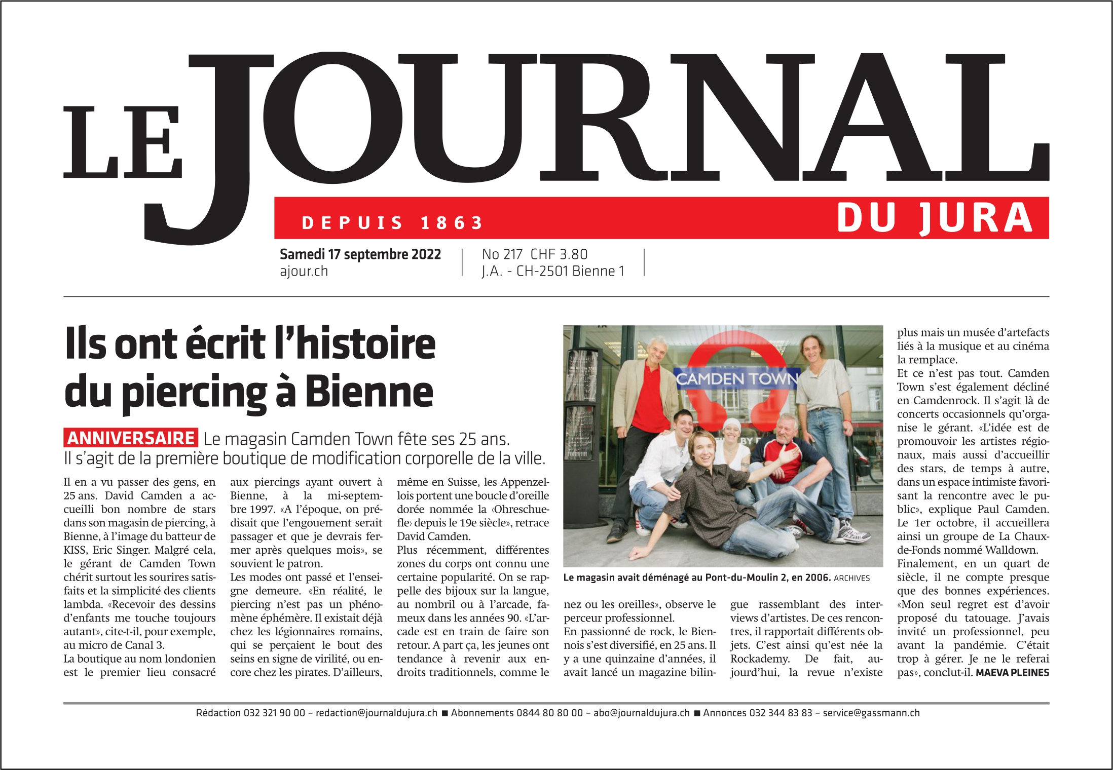 Il en a vu passer des gens, en 25 ans. David Camden a accueilli bon nombre de stars dans son magasin de piercing, à Bienne, à l’image du batteur de KISS, Eric Singer. Malgré cela, le gérant de Camden Town chérit surtout les sourires satisfaits et la simplicité des clients lambda. « Recevoir des dessins d’enfants me touche toujours autant », cite-t-il, pour exemple, au micro de Canal 3.